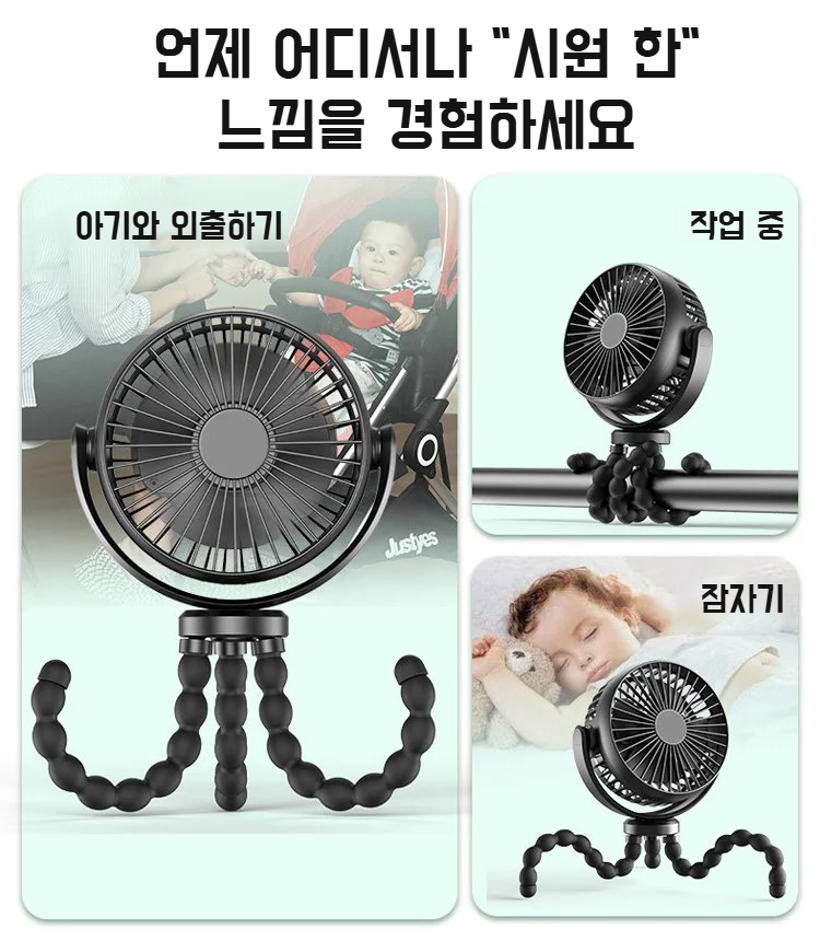 주꾸미 휴대용 선풍기 차량용 미니 선풍기 유모차 멀티 거치대 미니 선풍기